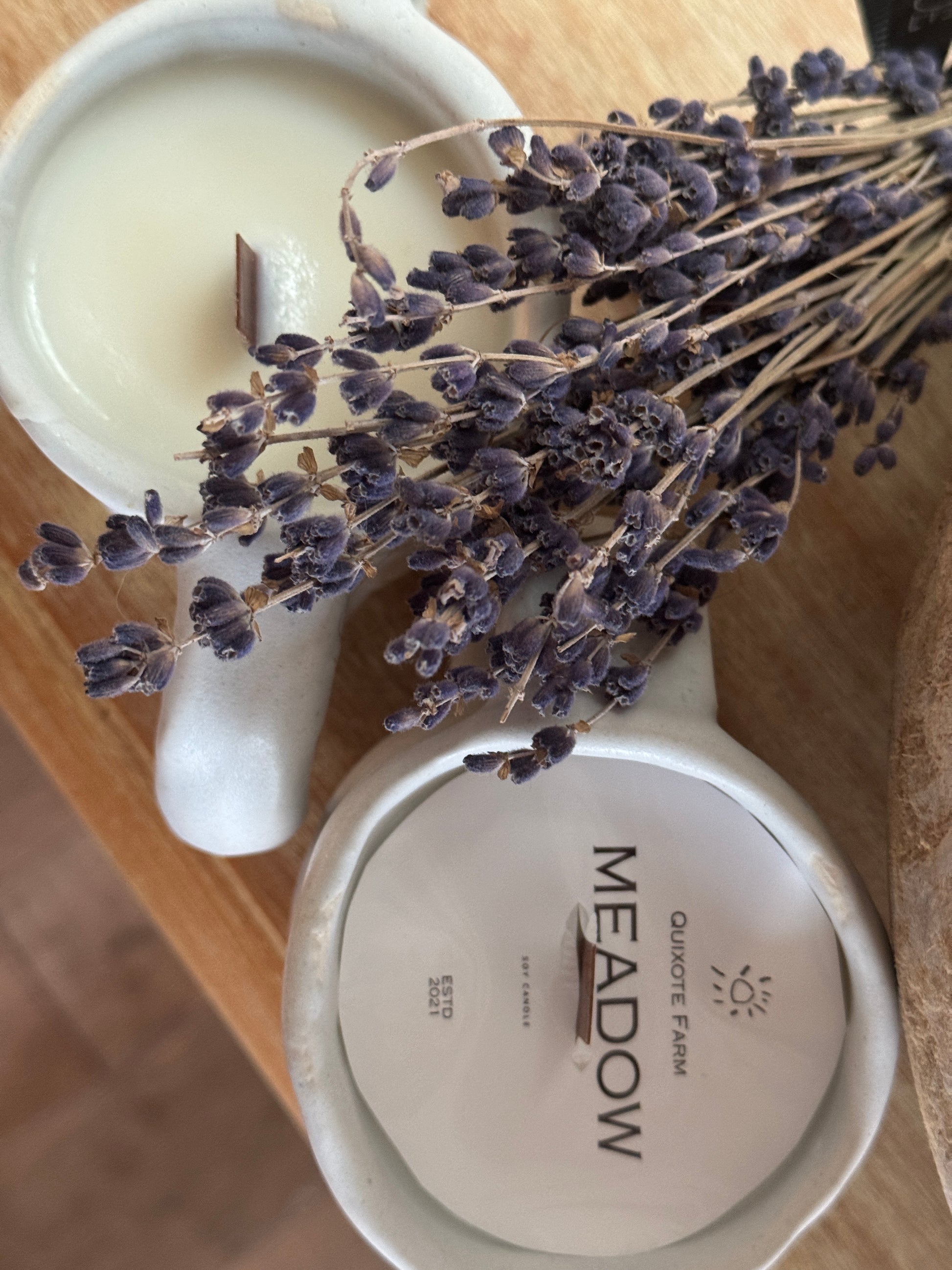 Our Meadow scent has top notes of Lavender with a touch of rosemary oak and moss
